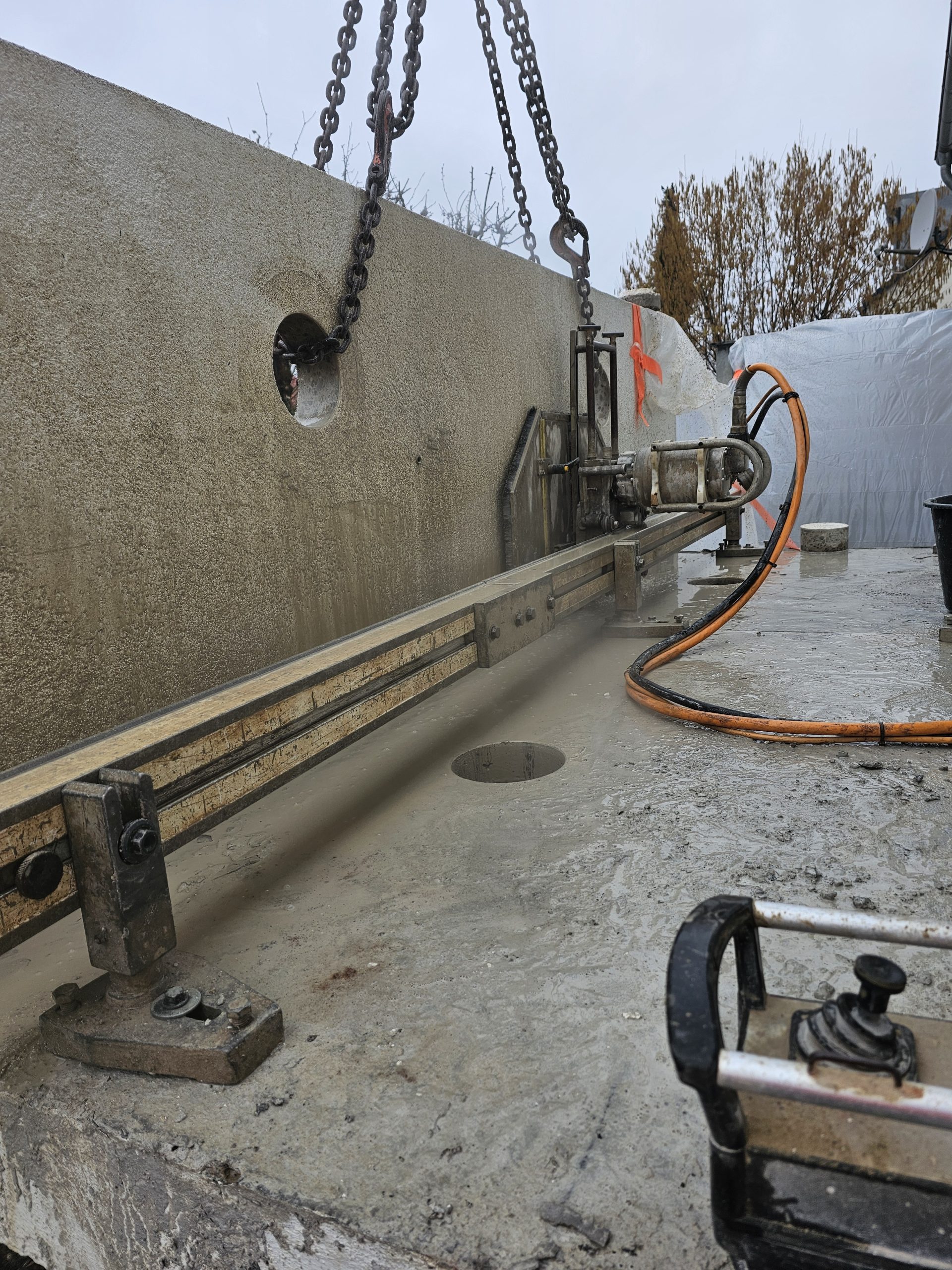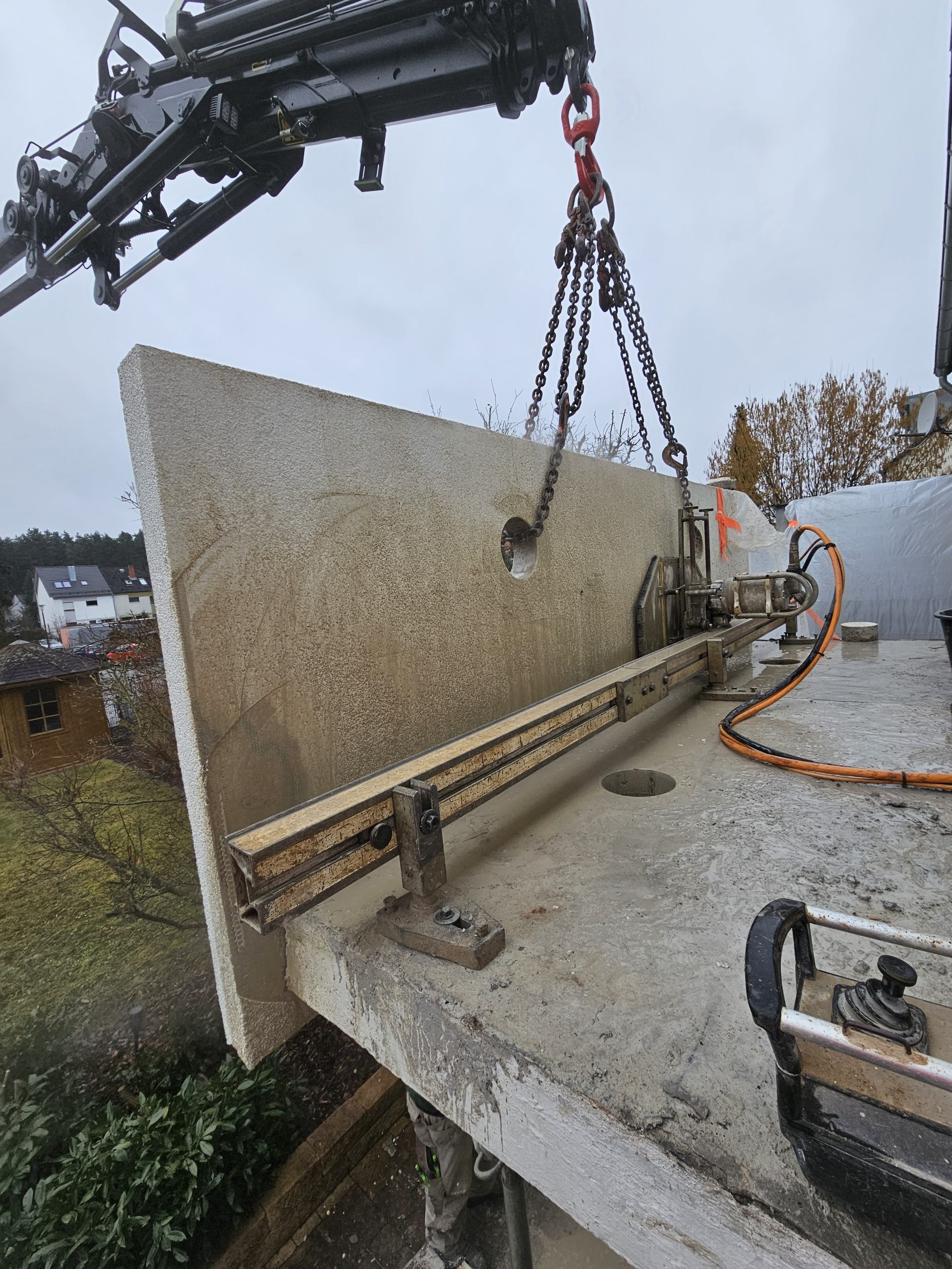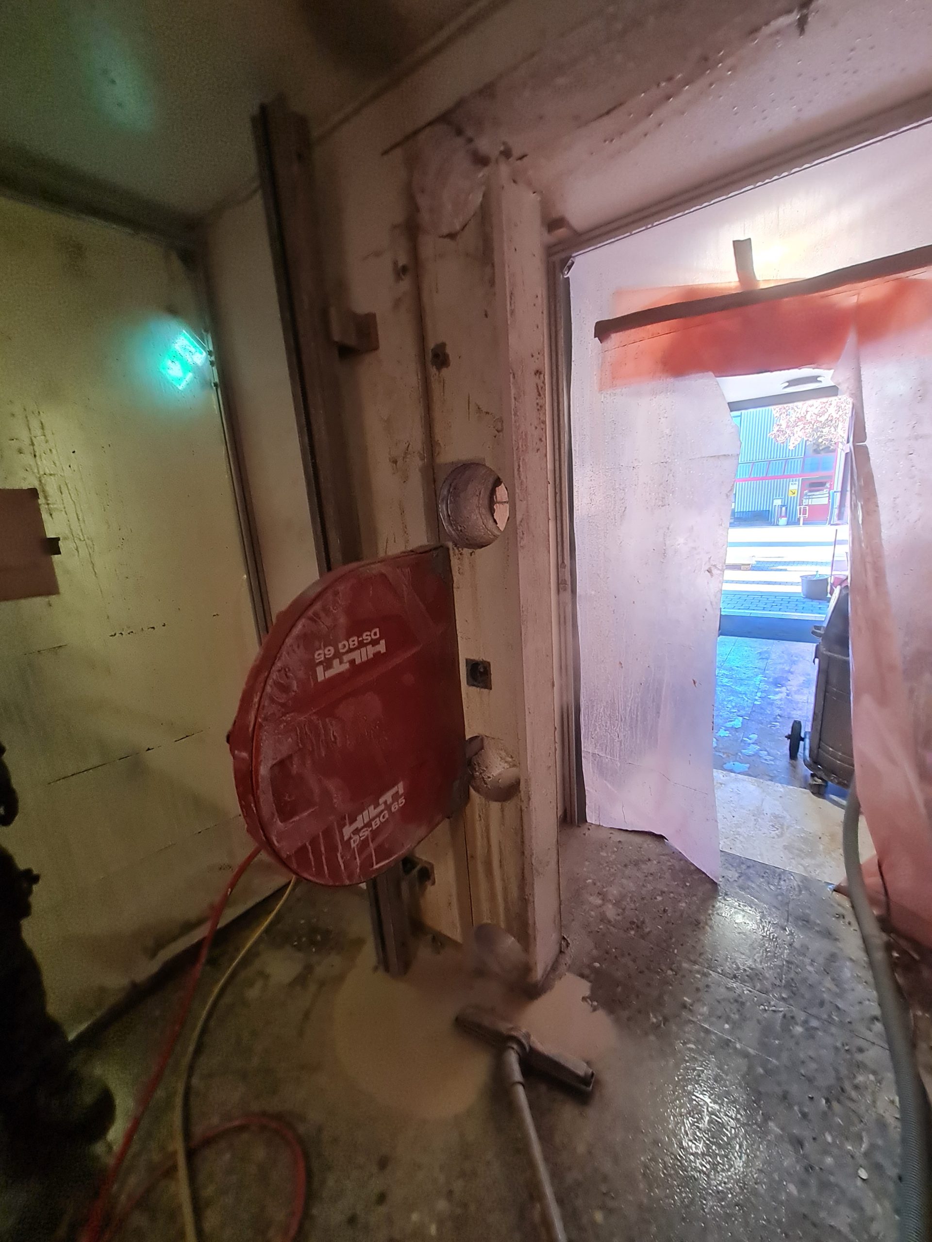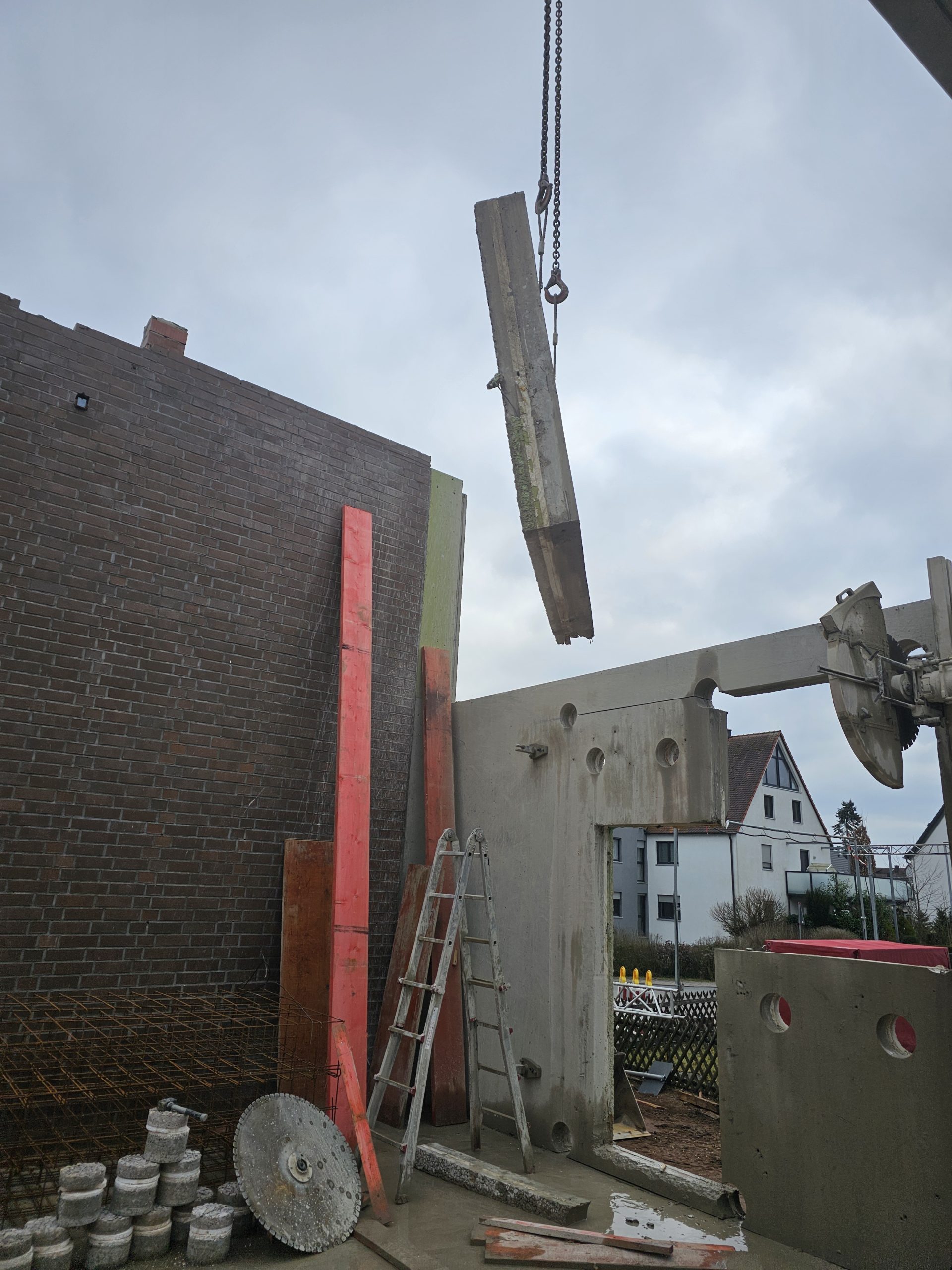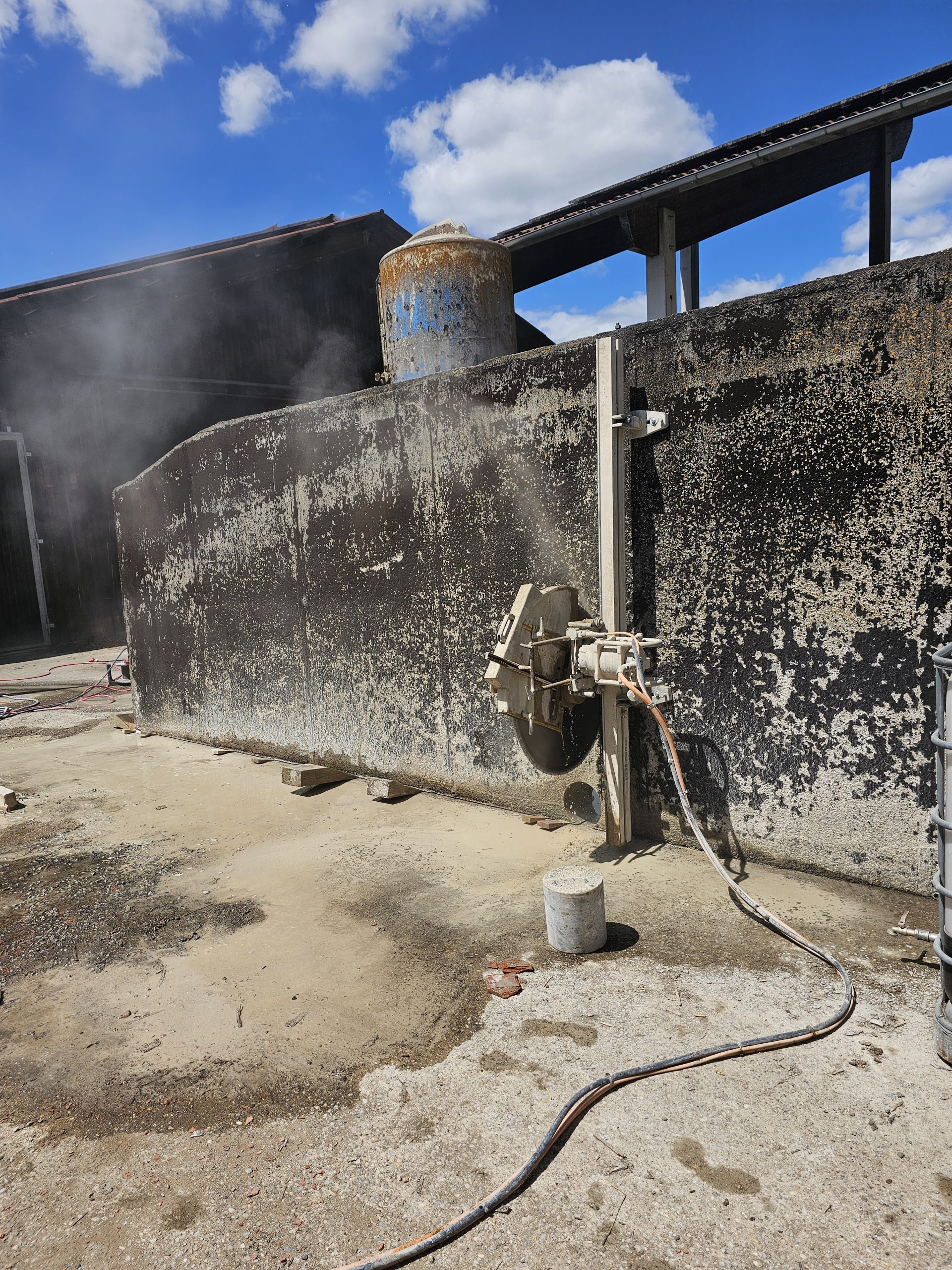 Für Türen, Fenster oder ganze Wanddurchbrüche: Wir schneiden Öffnungen präzise in Decken und Wände – auch über Kopf und wandbündig. Mit diamantbestückten Wandsägen entstehen saubere, gerade Kanten in Stahlbeton, Mauerwerk und Naturstein. Erschütterungsarm, kontrolliert und mit Blick auf die Statik, damit neue Räume entstehen, ohne die bestehende Substanz unnötig zu belasten.