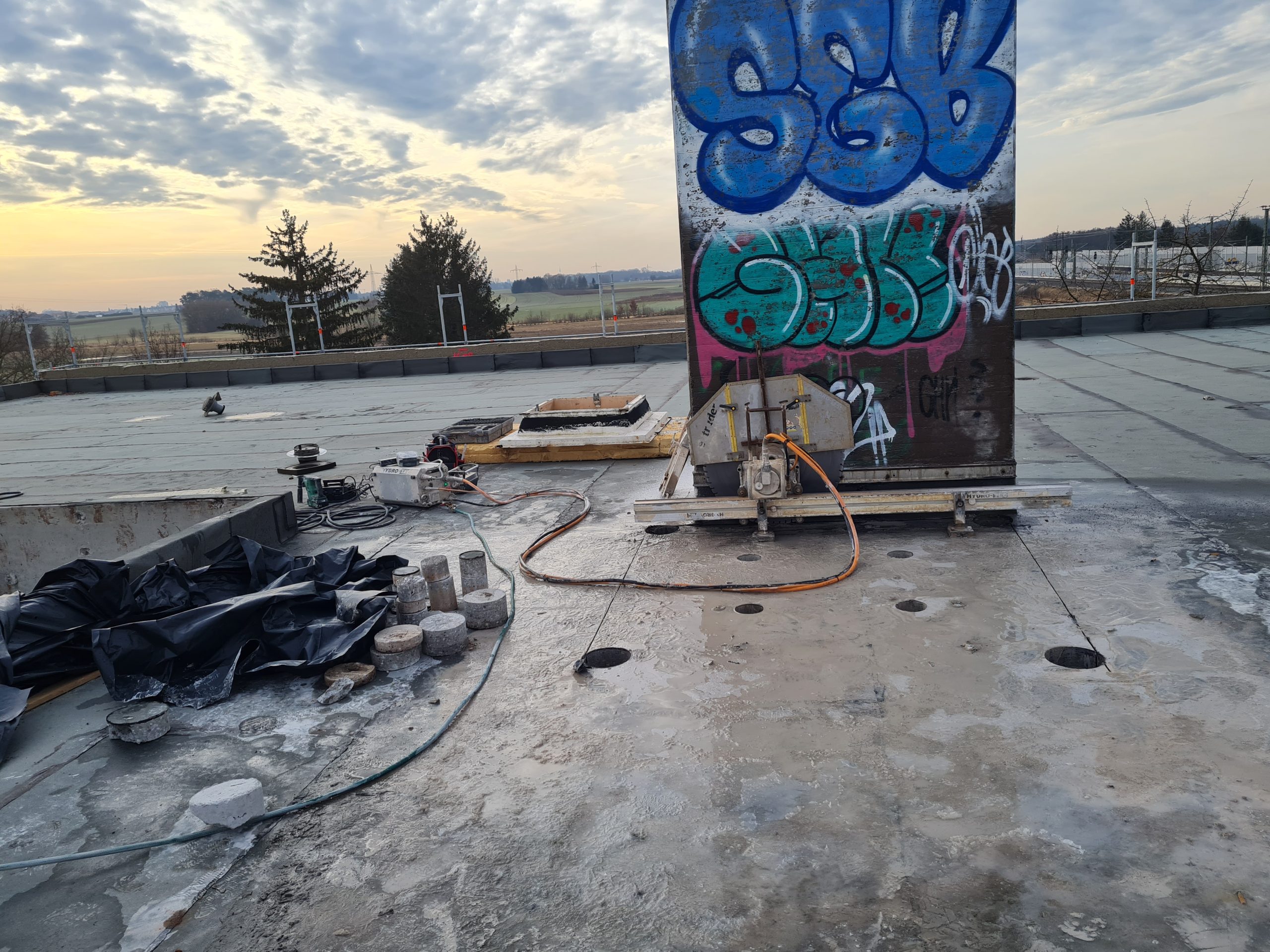 Überschüssiges Beton-Fundament sägen