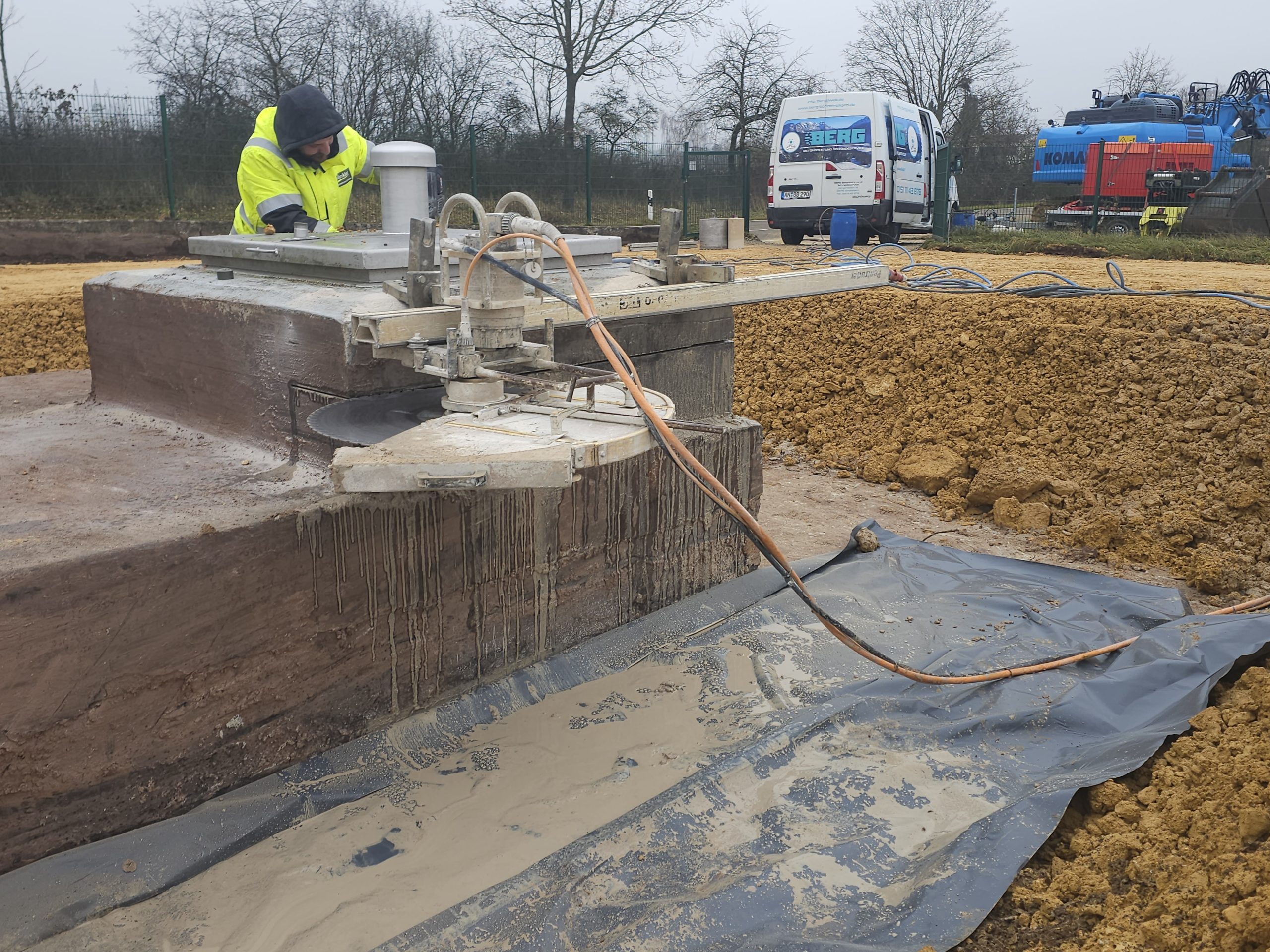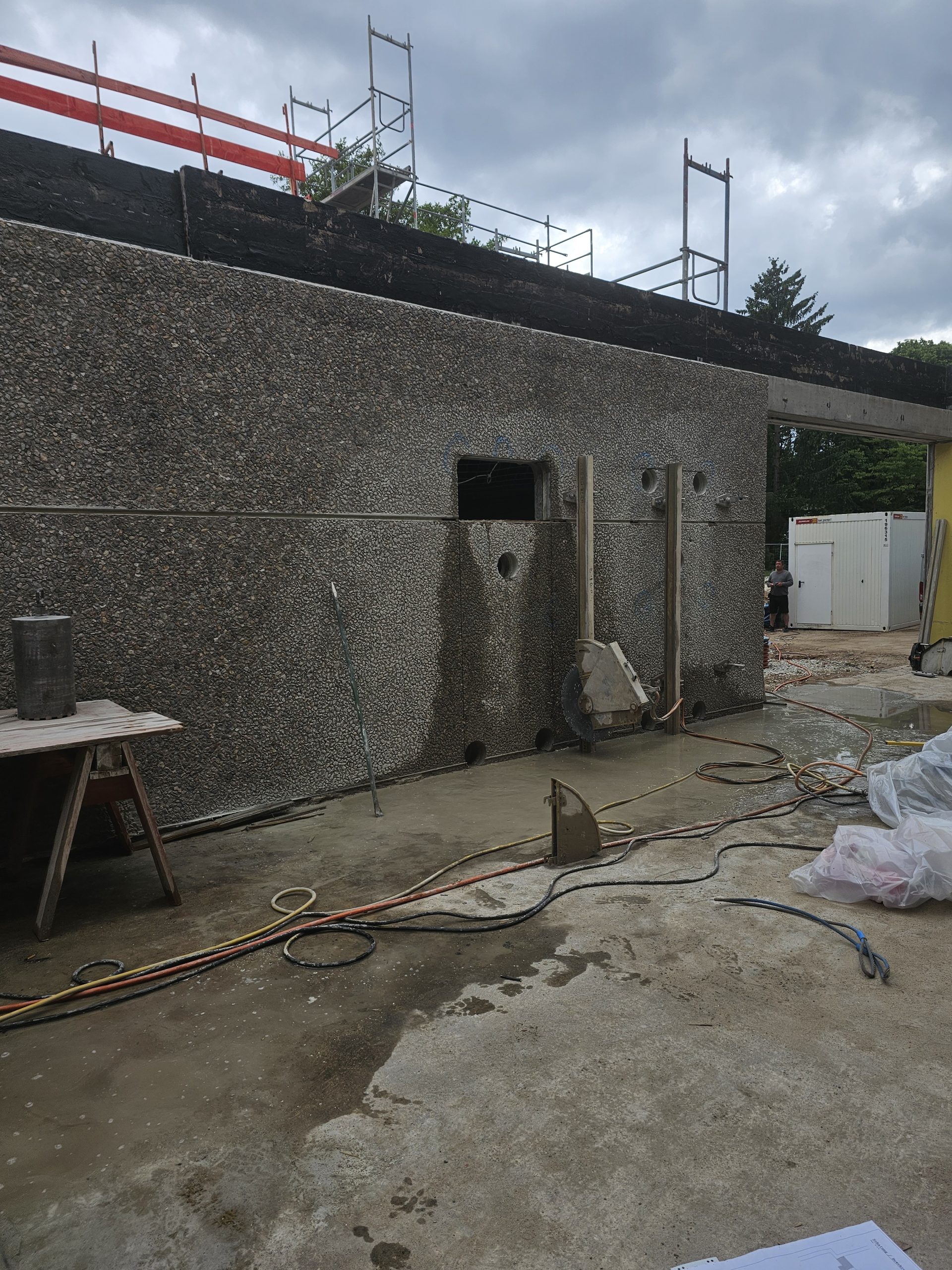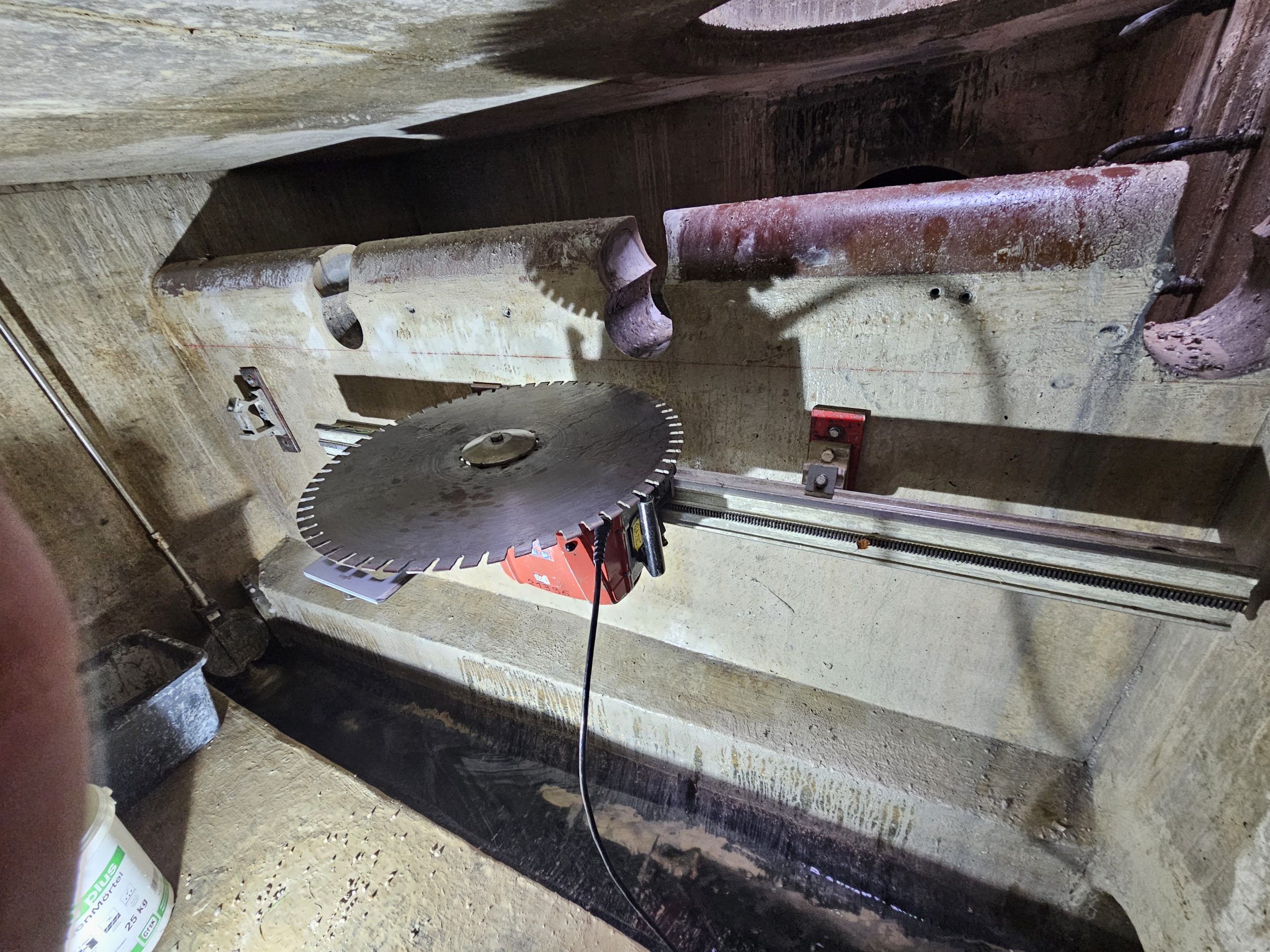 Kanalisation – Wände des Überlaufbeckens sägen