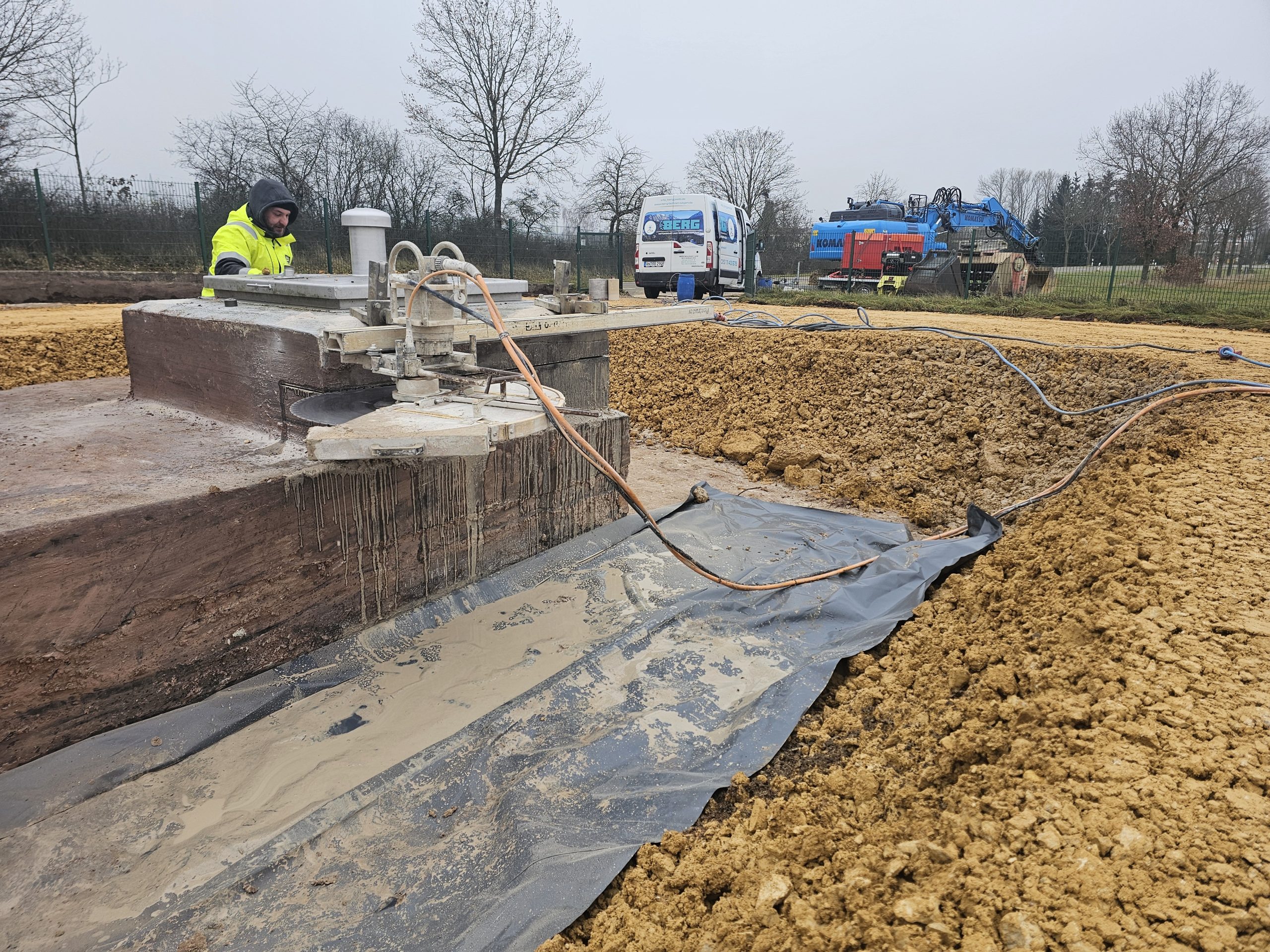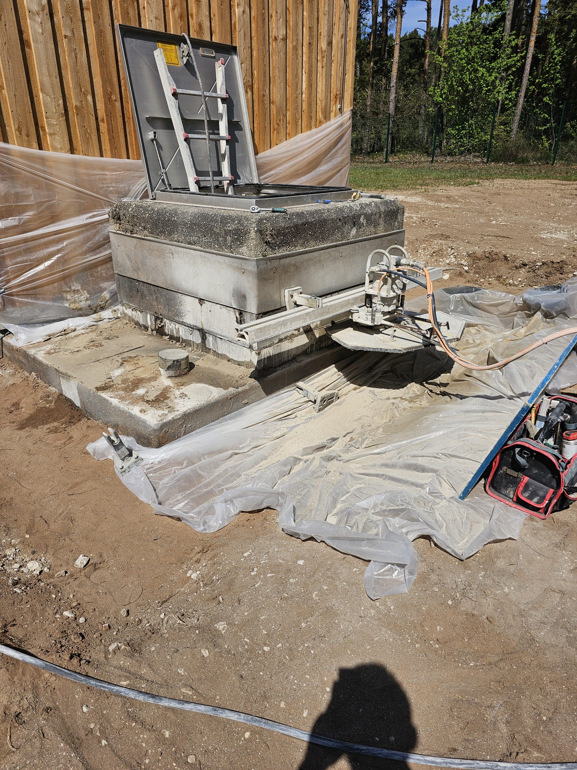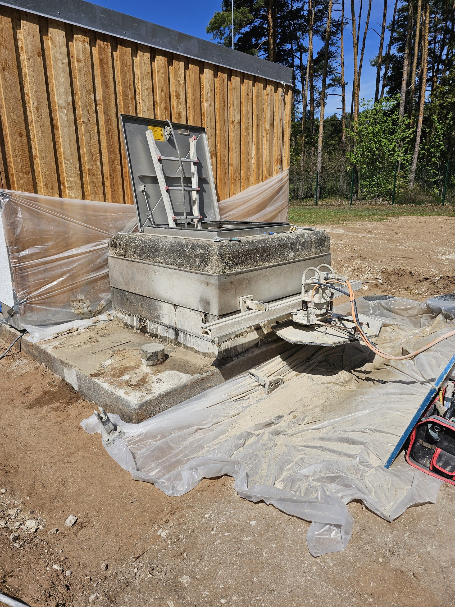 Kanalisation – Wände des Überlaufbeckens sägen