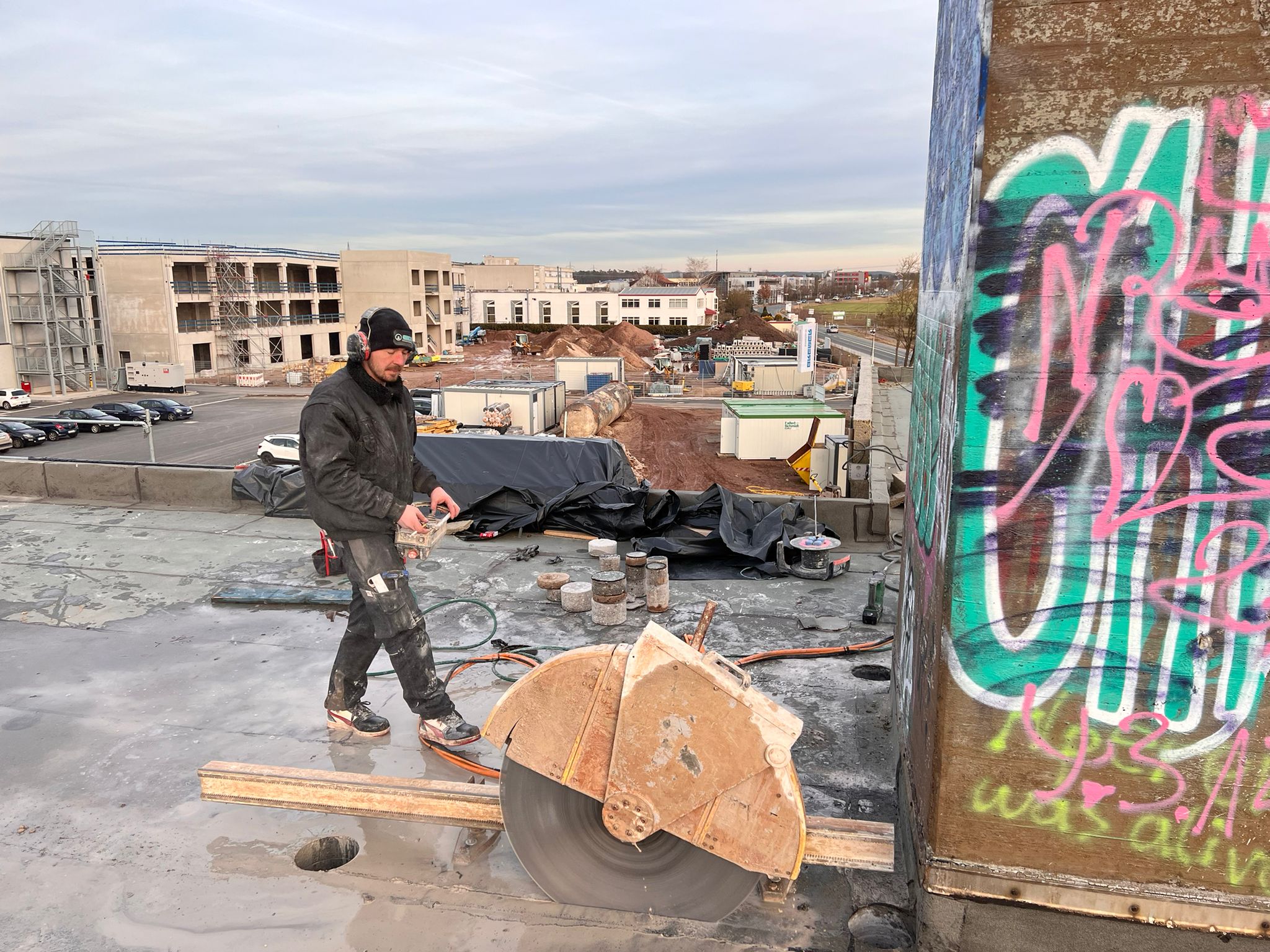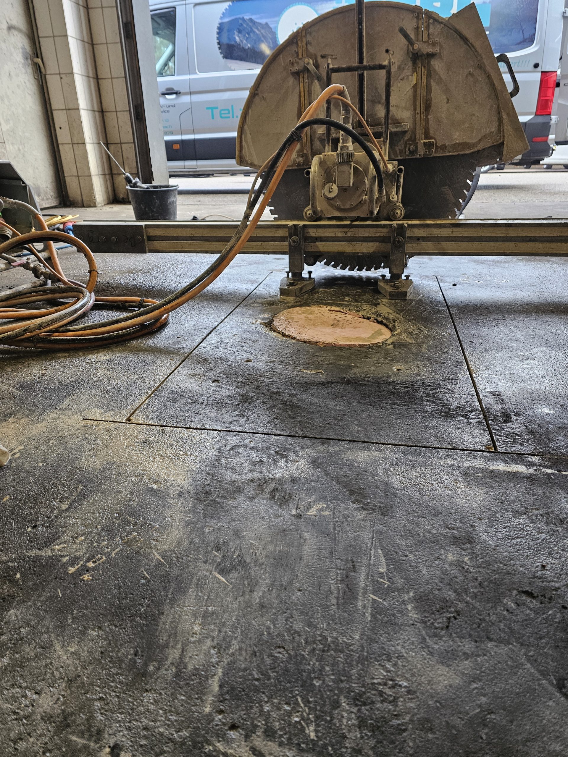 Bodenplatte schneiden – Stahlbeton für ein neues Abflussrohr